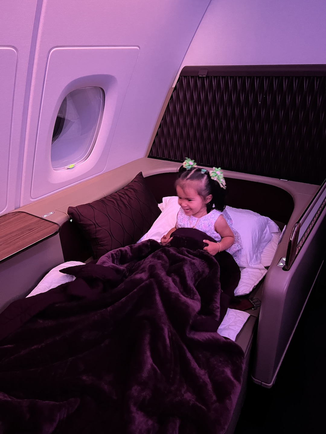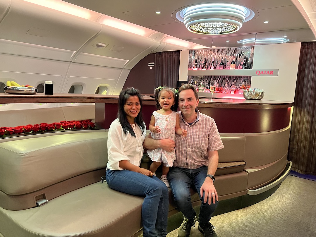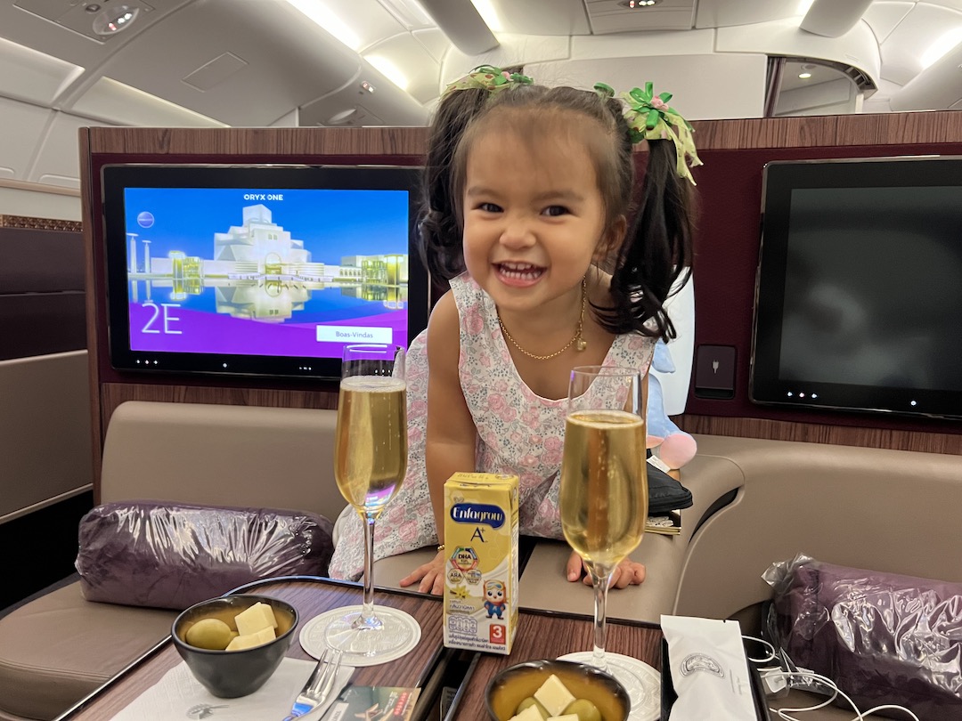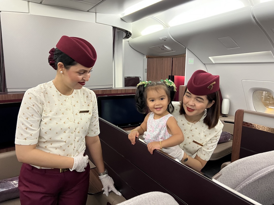 We were all alone in the First Class cabin of our flight BKK-DOH