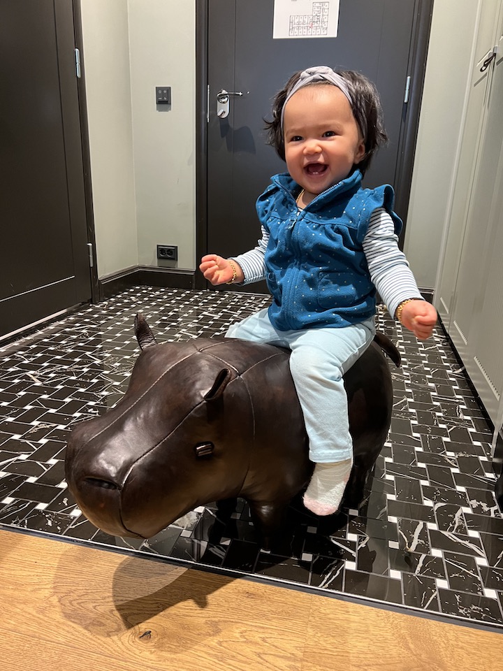 in our beautiful room. I tried to ride the hippo but it was