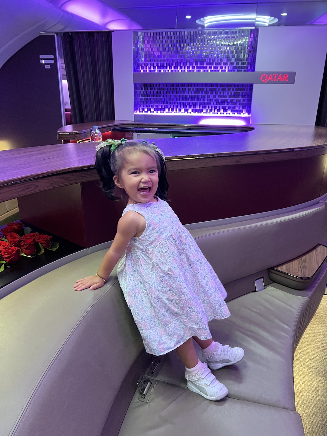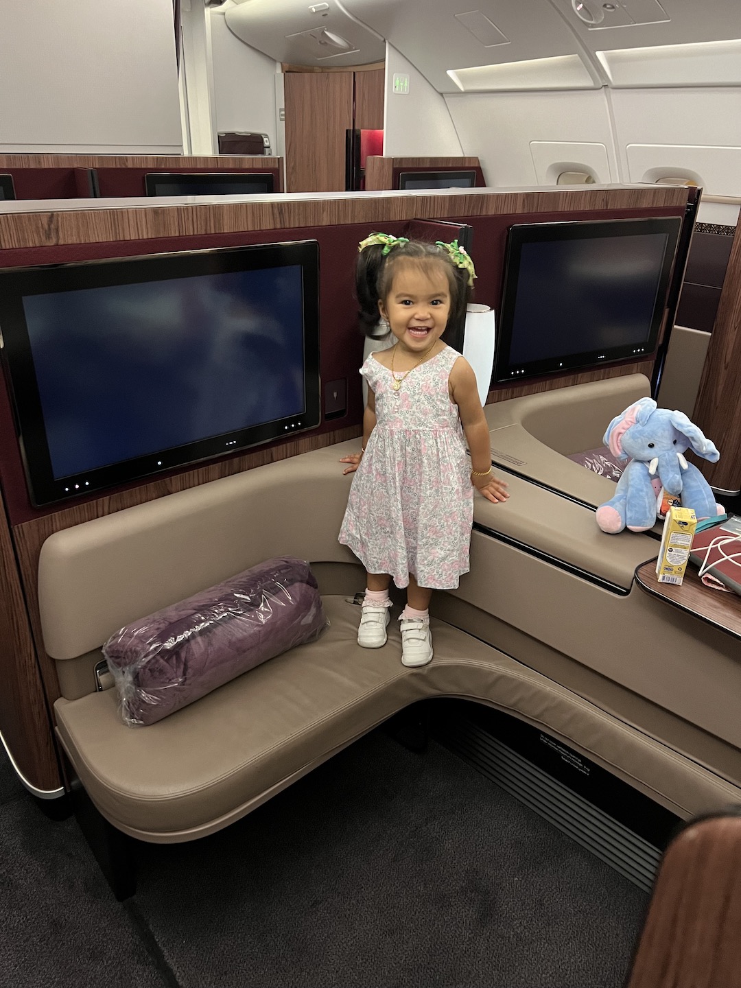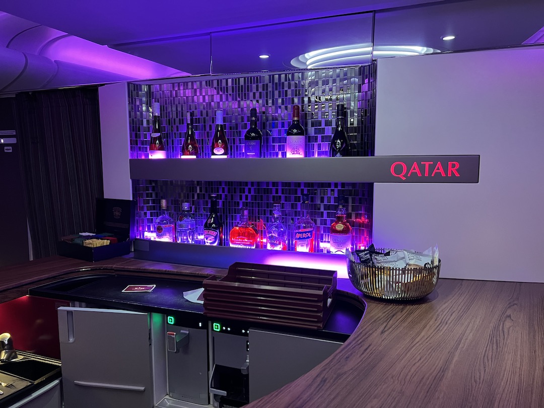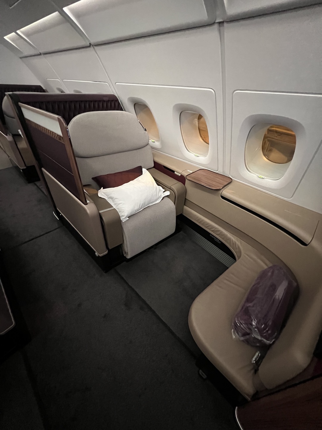 We were all alone in the First Class cabin of our flight BKK-DOH
